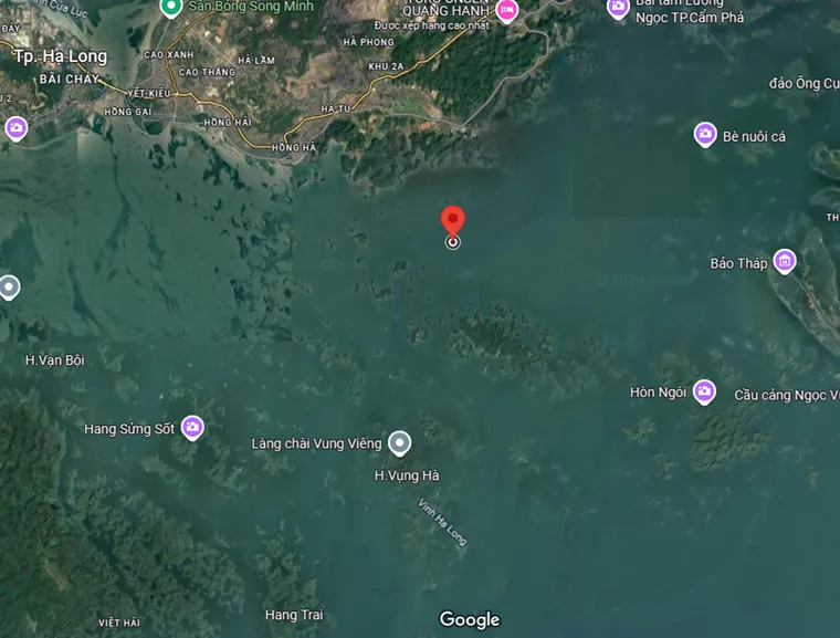 Ha Long Bay has an average depth of 5 - 10m. Photo source: Google Maps