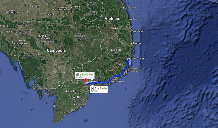 Distance between Nha Trang and Ho Chi Minh City - Image source: Google Map