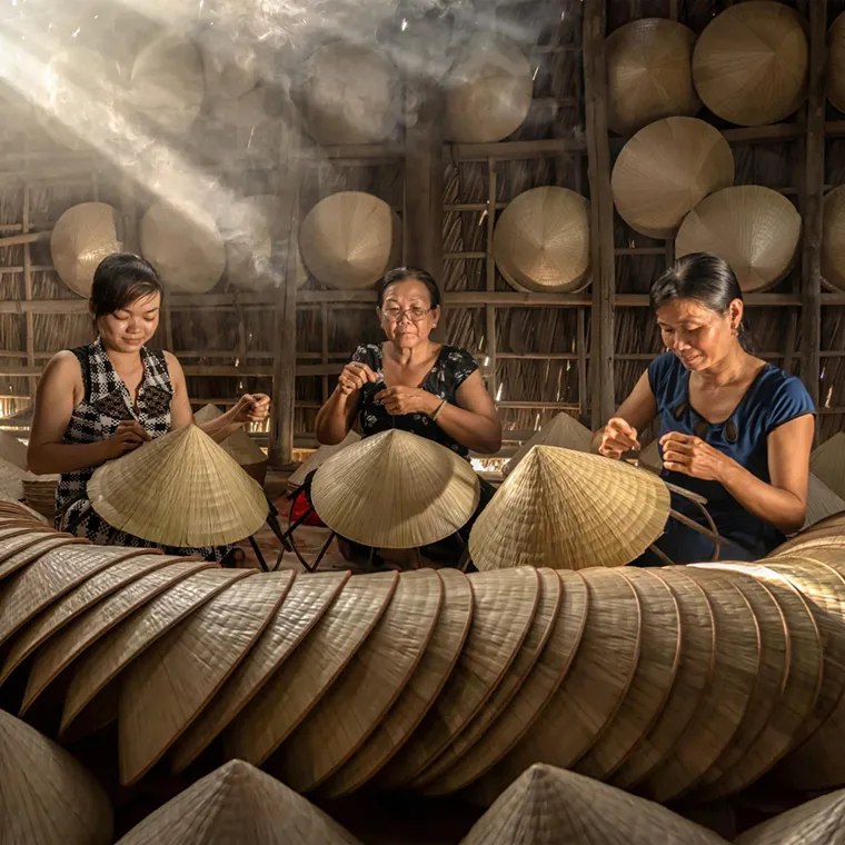 Symbolizing Vietnamese heritage, these hats and silk garments are widely available in Ha Long Bay’s markets - Photo Source: Facebook Kou Yang