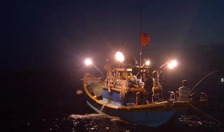 Ideal conditions for squid fishing include fishing between 8 PM to 11 PM, on moonless nights with clear weather and calm seas - Photo Source: Fanpage Câu Mực Hạ long