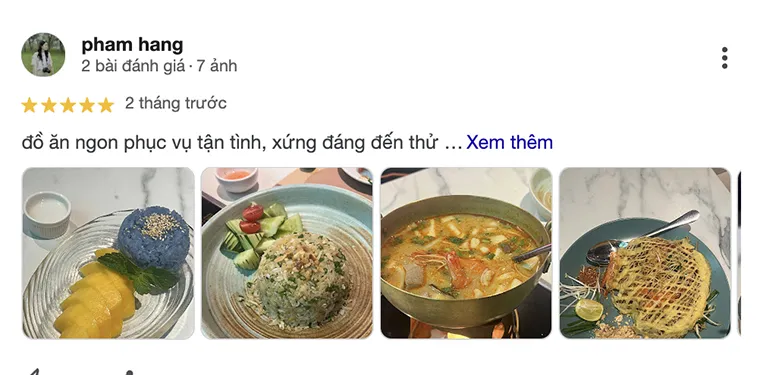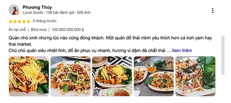 Phuong Thuy: "A small and pretty restaurant that's always crowded. It's a Thai place I like more than Koh Yam or Thai Market. The owner is super enthusiastic, the food is served quickly, the flavors are rich and authentically Thai but very suitable for Vietnamese people. All the dishes are delicious. Every time I come, I want to re-experience some of the dishes I've already had but really loved. The Tom Yum soup and Thai hotpot have a super addictive flavor!"