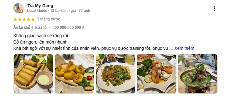 Thu Ha: "I found the food here quite delicious, with rich flavors. The restaurant's space is also cozy."