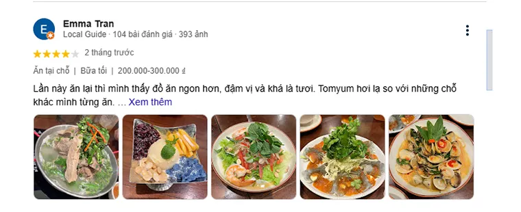 Hoang Nam: "I'm impressed with the creativity in the restaurant's dishes. The Tom Yum here has a rich sour and spicy taste but is still very refined. The price is a bit high but worth the quality."