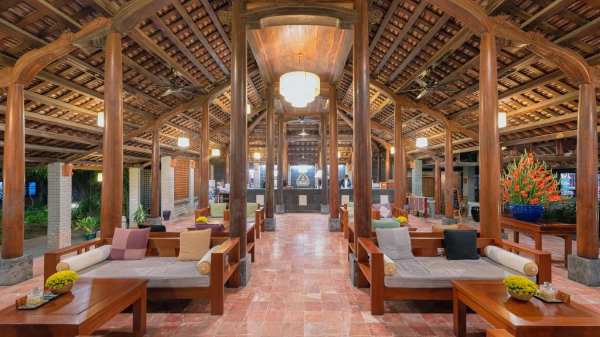 For those who want to escape the city noise entirely, this resort is located on the outskirts of Hue, closer to the famous royal tombs. It offers a rustic, village-like atmosphere with thatched roofs and brick paths. It is an ideal spot for couples or families who want to balance sightseeing with periods of total relaxation. Most guests appreciate the shuttle bus service that runs regularly between the resort and the city center, giving you the best of both worlds.