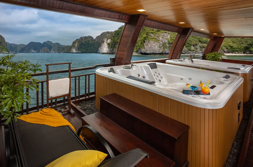 La Regina Royal is a luxurious 5-star cruise, harmoniously combining contemporary architectural style and classic elegance. With its sophisticated design, the cruise offers a world-class resort space and a memorable experience exploring Halong Bay and Lan Ha Bay.