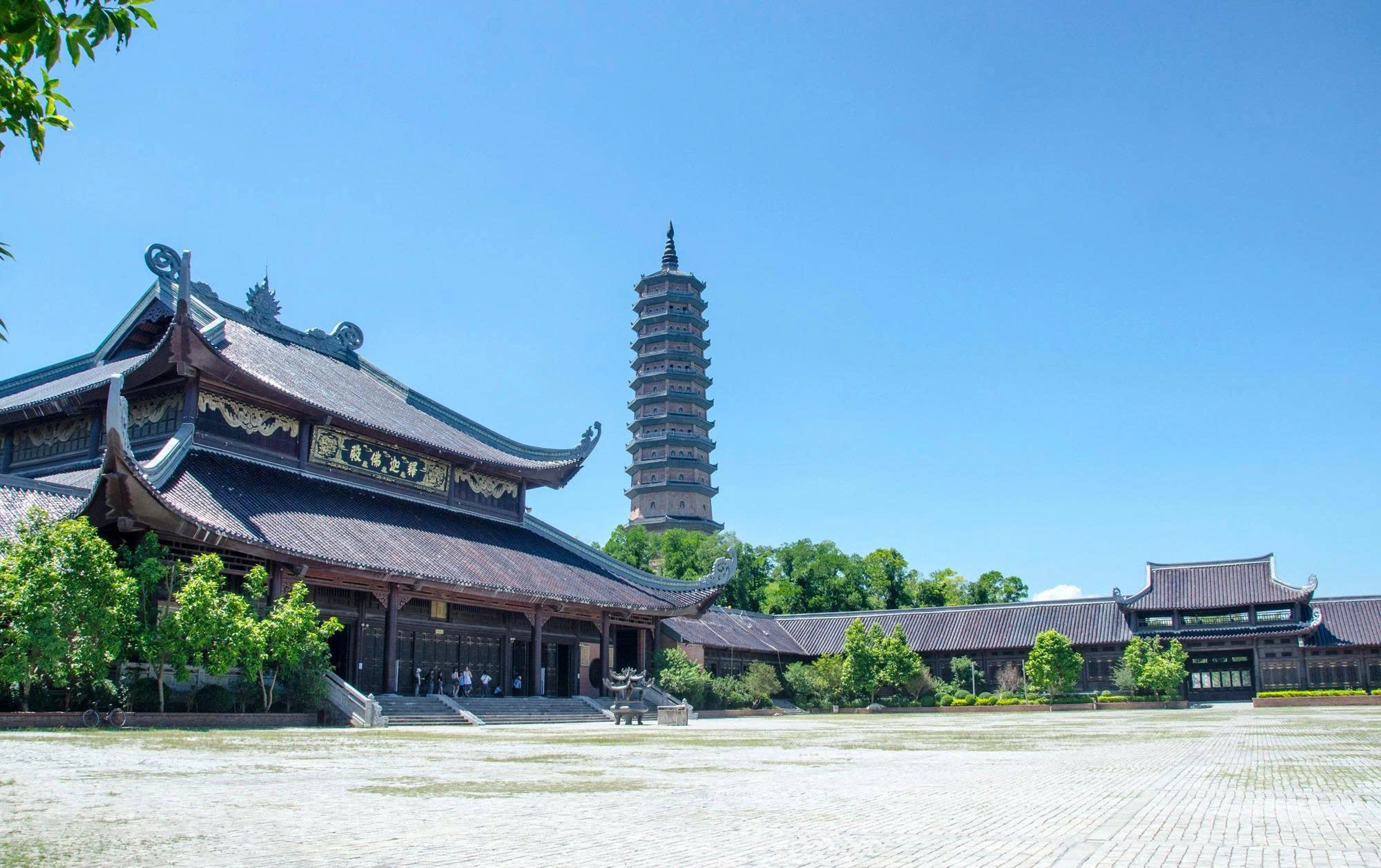 10:00 AM: The group arrives at the Bai Dinh Pagoda complex to visit the Tam The and Phap Chu temples, each with an area of up to 1,000m2. You will also see the statues of Bodhisattva Avalokiteshvara (Phat Ba Quan Am), Shakyamuni Buddha (Phat Thich Ca Mau Ni), the largest bronze Buddha statue in Southeast Asia, three Tam The statues (each weighing 50 tons), and the largest bell in Southeast Asia (weighing 36 tons).