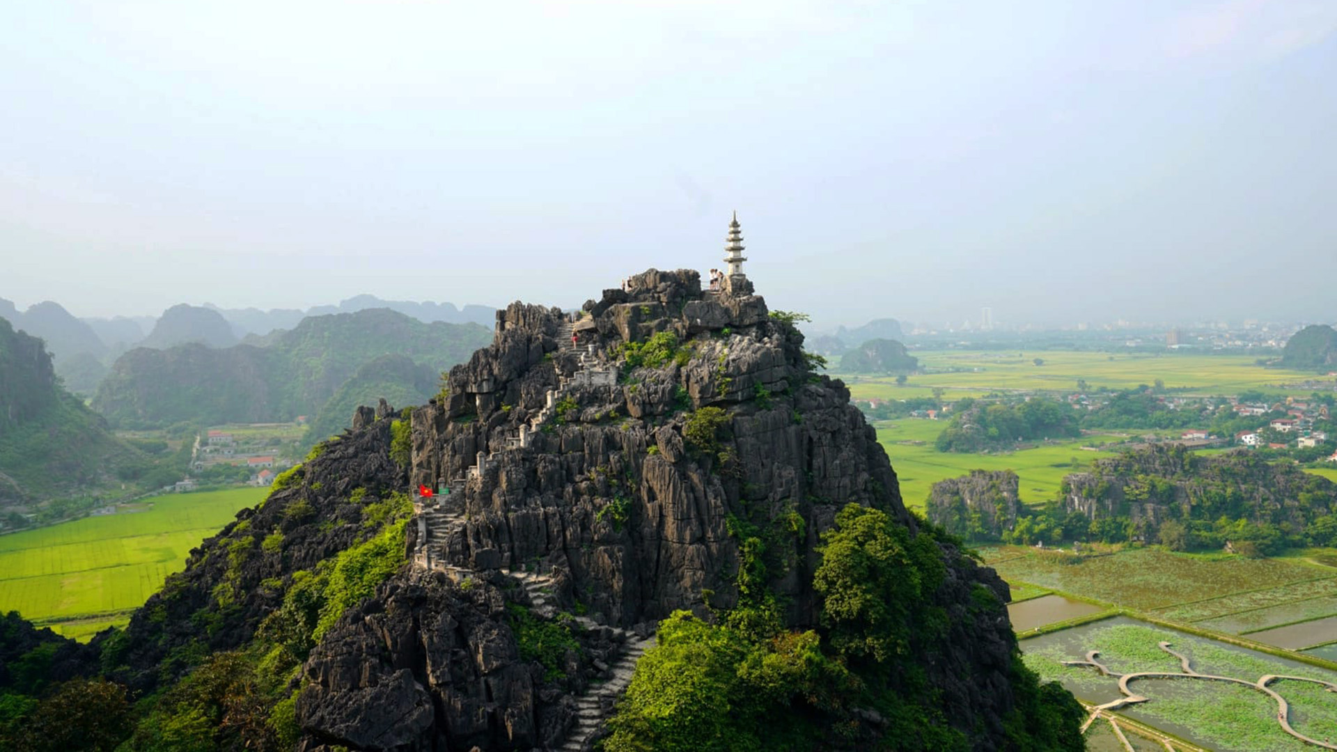 11h30: Return to the bus and depart Hoa Lu to Mua Cave. Climbing nearly 500 steps, you can reach the Dragon Mountain peak and admire the panoramic view of Tam Coc from here.