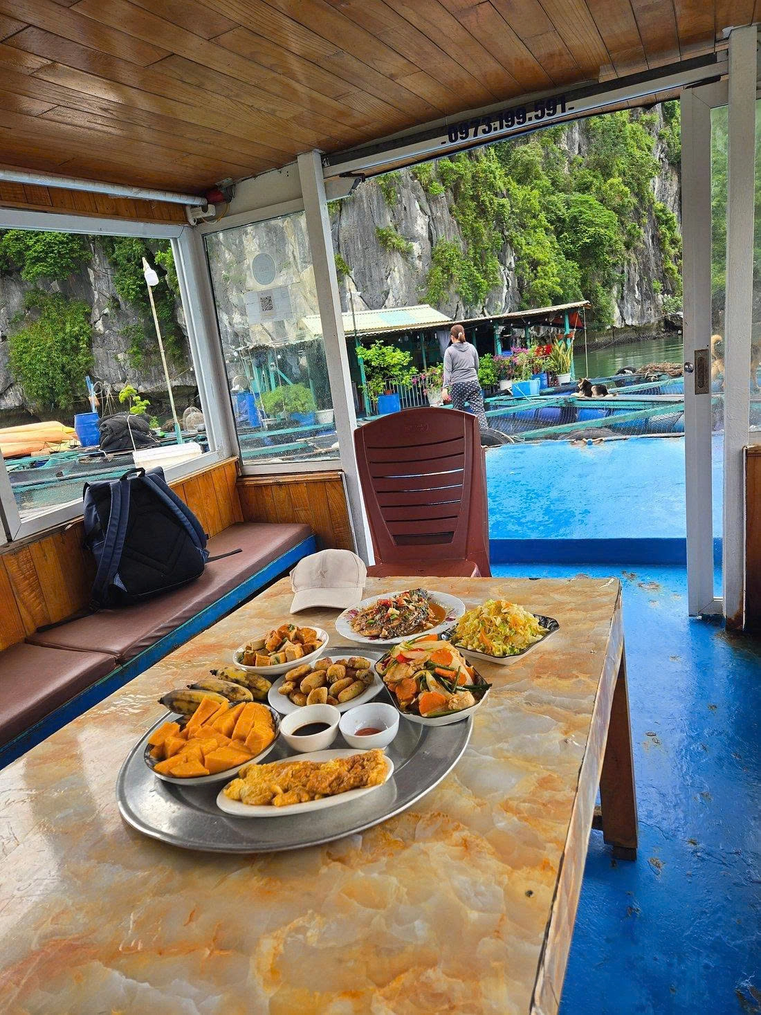 17:30: Visit a local floating fish farm to learn how fishermen live and work on the water. Join a hands-on cooking class onboard, where you'll learn to prepare traditional Vietnamese dishes. Dinner will be served on the boat.