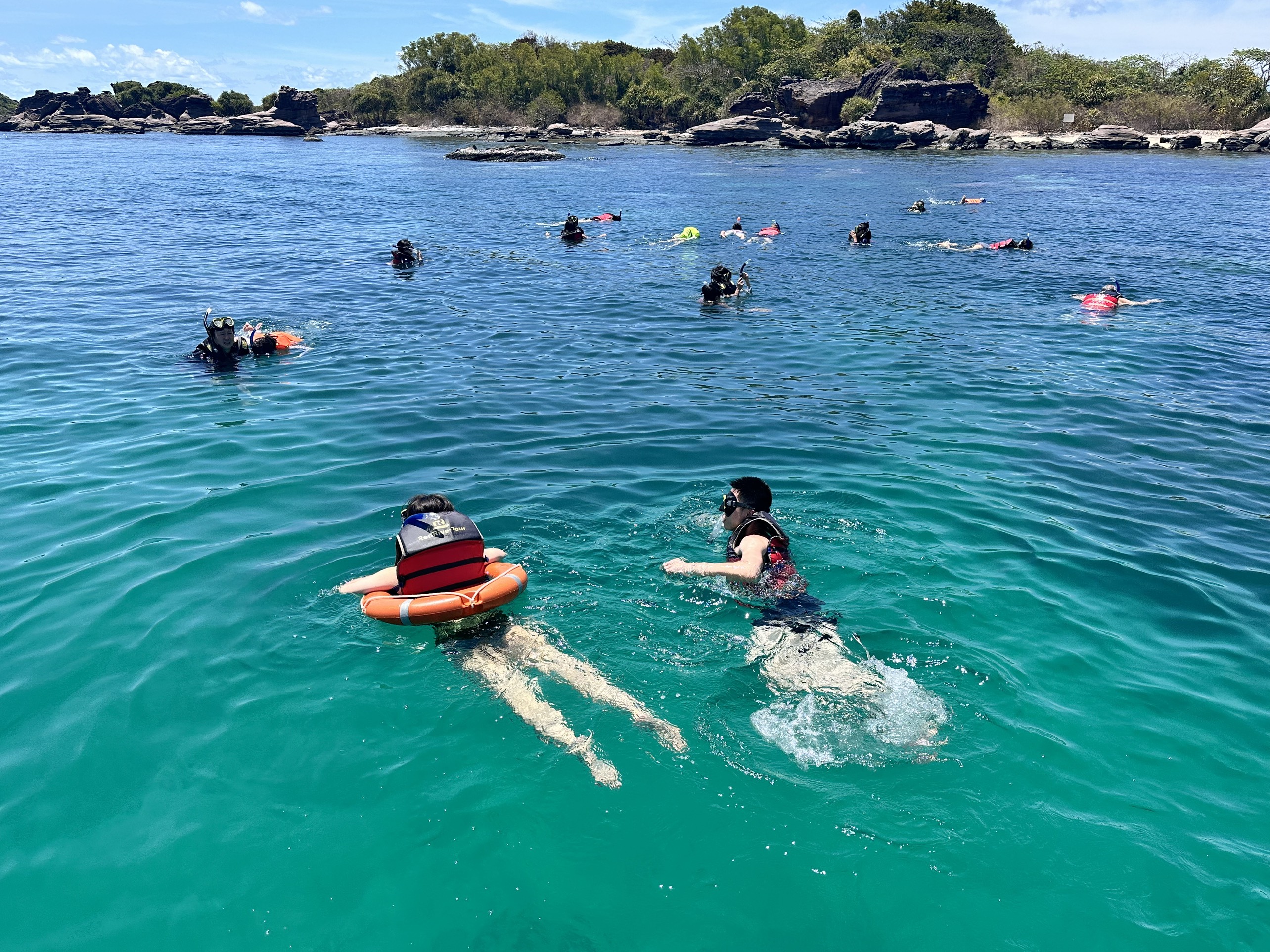 Quý khách cũng có thể tham gia các trò chơi biển (tự túc) tại đây như dù bay, kayak,… Dừng tại 2 hòn đảo tại quần đảo An Thới: